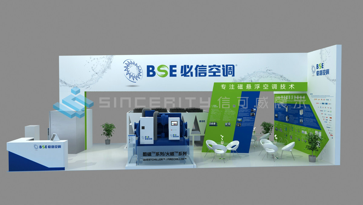 必信空調(diào),蘇州必信空調(diào)有限公司位于蘇州高新區(qū)科技城,是國(guó)內(nèi)一家專注于磁懸浮空調(diào)技術(shù)的國(guó)家級(jí)高新技術(shù)企業(yè)。必信空調(diào)展臺(tái)設(shè)計(jì)融科技、環(huán)保于一體,契合必信空調(diào)“中國(guó)智造”的經(jīng)營(yíng)戰(zhàn)略,呼應(yīng)“新時(shí)代、新智造、新征程”主題,折射出高效、節(jié)能、環(huán)保的產(chǎn)品定位。