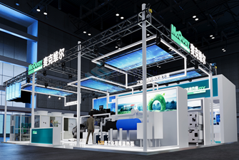從圖片中可以看出,展臺使用了高質量的材料和精細的工藝。展臺的結構穩固,表面光滑,顯示出信可威在施工方面的專業水平。此外,展臺的搭建材料看起來既環保又耐用,這不僅符合現代展覽設計的趨勢,也體現了公司對可持續發展的承諾。