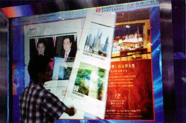 iPad互動系統(tǒng)-展區(qū)里100寸光學(xué)交互系統(tǒng)可以算是世界上最大的"Ipad” 了。在這里,用手指就可以實(shí)現(xiàn)屏幕控制,取代了鼠標(biāo)、鐳射筆.控制桿等周邊設(shè)備。我們可以通過交互系統(tǒng)隨時隨地的獲取信息,觀看新華社發(fā)展史、視頻資料及新聞。現(xiàn)在可觸摸查詢七項(xiàng)主題內(nèi)容: CFC新華08在線數(shù)據(jù)、中國財經(jīng)專網(wǎng)、新華每日電訊、新華歷史視頻資料、電子書籍、新華手機(jī)報、尊貴相冊。
