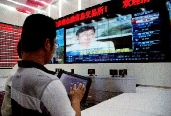 智能中控-參觀中記者發(fā)現(xiàn)陪同的技術(shù)人員手上拿著一塊平板電腦,這就是為什么我們走到那里都有特殊待遇 的原因了。交易所采用的MIP智能管理控制系統(tǒng),專門用于多媒體控制的新型技術(shù)。MIP可以將原來對各類視頻源、音頻源、視音頻終端播放設(shè)備、各類信號間的切換和一些強(qiáng)電設(shè)備的分散控制和操作全部集中在一起,經(jīng)過軟件編程,就可以在同一個觸摸屏上實(shí)現(xiàn)對所有設(shè)備的分別控制和程序化控制。